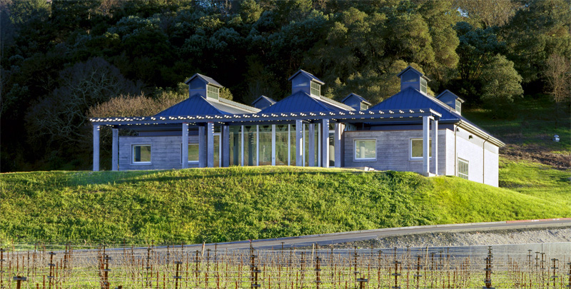 Completed in 2005, the state-of-the-art gravity-flow winery boasts a berry-by-berry sorting system and conical tanks commissioned using a design inspired by the tanks of Château Latour. One tank per vineyard block ensures each lot evolves at its own pace and acres of caves with single-layer barrel storage ensure access to each barrel at all times. No corner has been cut.