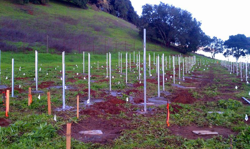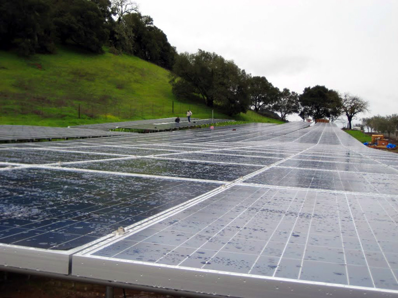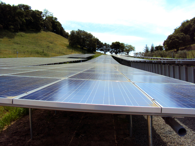 The customer wanted to accomplish two things in this project: Install a system that would eliminate their PG&E electric bill and consolidate the Winery and Administrative systems in a single infrastructure. Once the engineering started, we realized that their preferred installation location for the 344.5 kW DC ground mount system was over a leech field that sloped down toward the vineyard. This required environmental engineering in addition to the normal electrical engineering required by the building department.