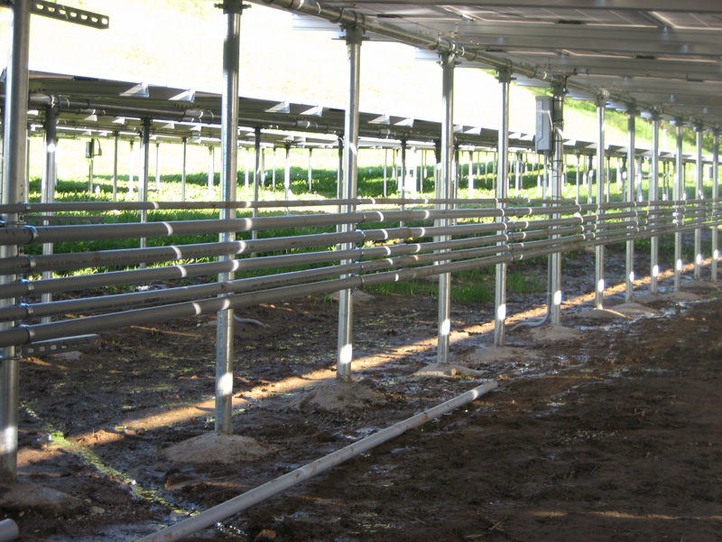 One of the key issues was to install the PV poles with no more than an 18” distance between them and the septic field boxes. There were over 120 of them in the field. To insure compliance with the environmental requirement s of the building department, our layout had to be precise. Our team spent extra time and effort to insure the exact locations before any construction activity started. In parallel, our engineering, and construction teams worked closely with our product suppliers to insure that our solution would hold up to any environmental issues that might arise.