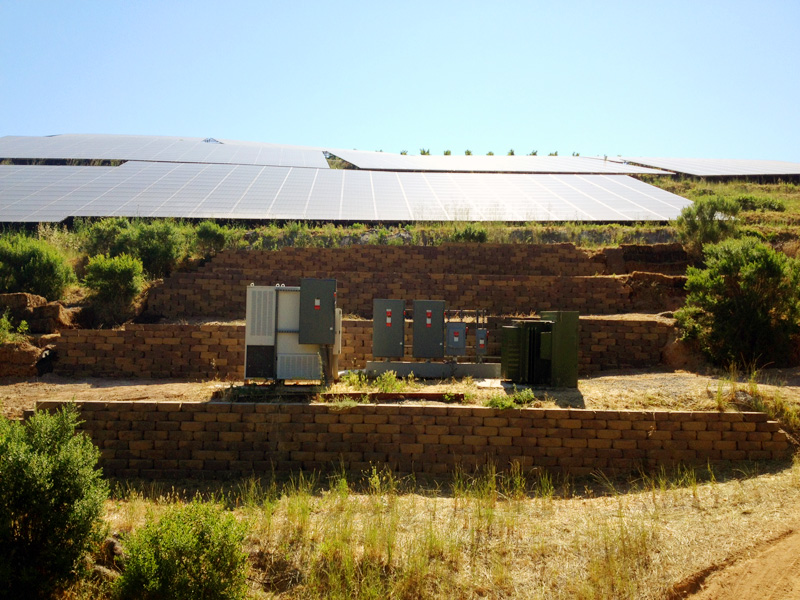 Our skilled and experienced engineering, structural, construction and electrical teams designed and installed over 1694 panels with re-enforced concrete and rebar footings, a centralized inverter at the array site, and constructed and erosion control system (including block walls) to prevent any damage to the terrace soil structure.